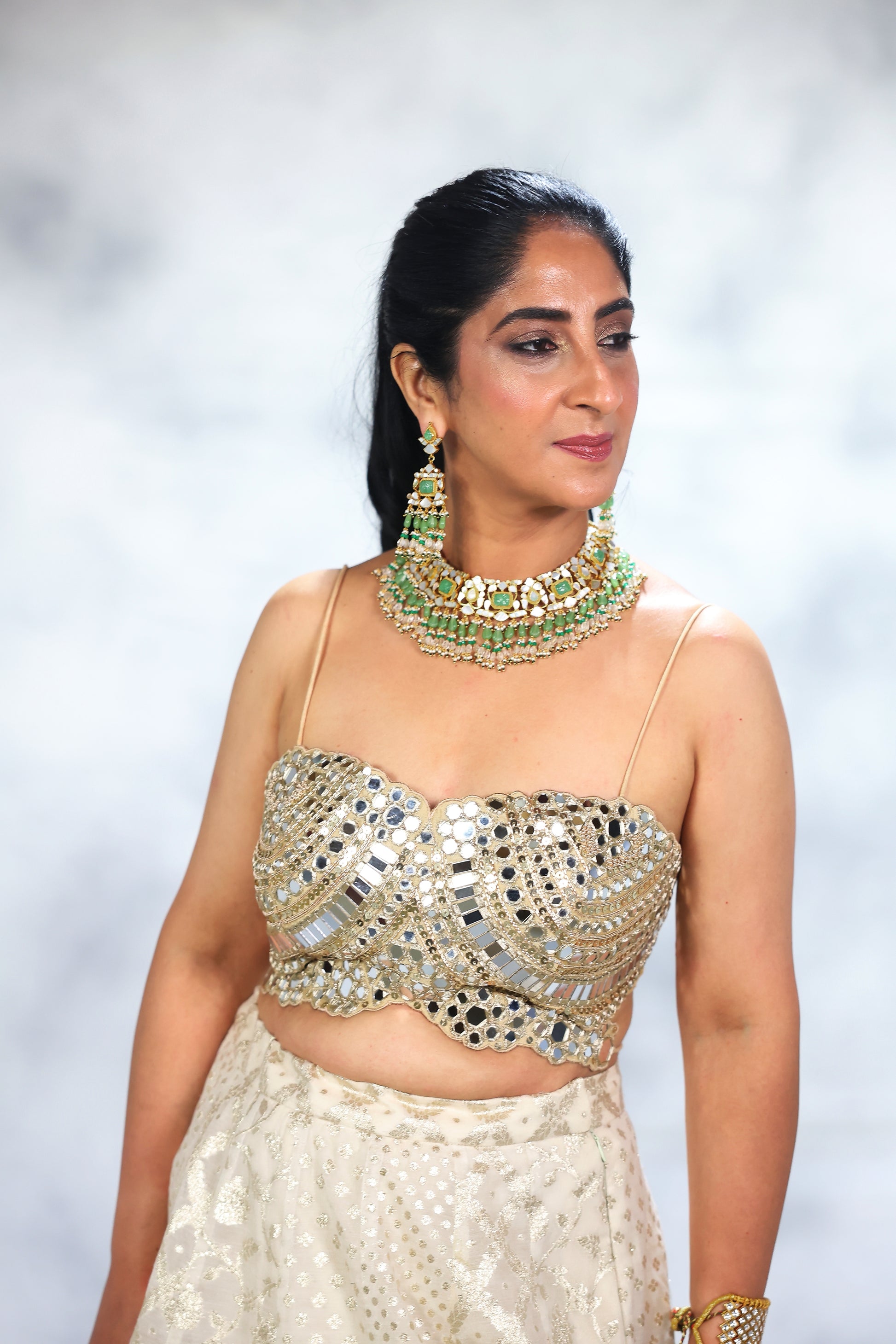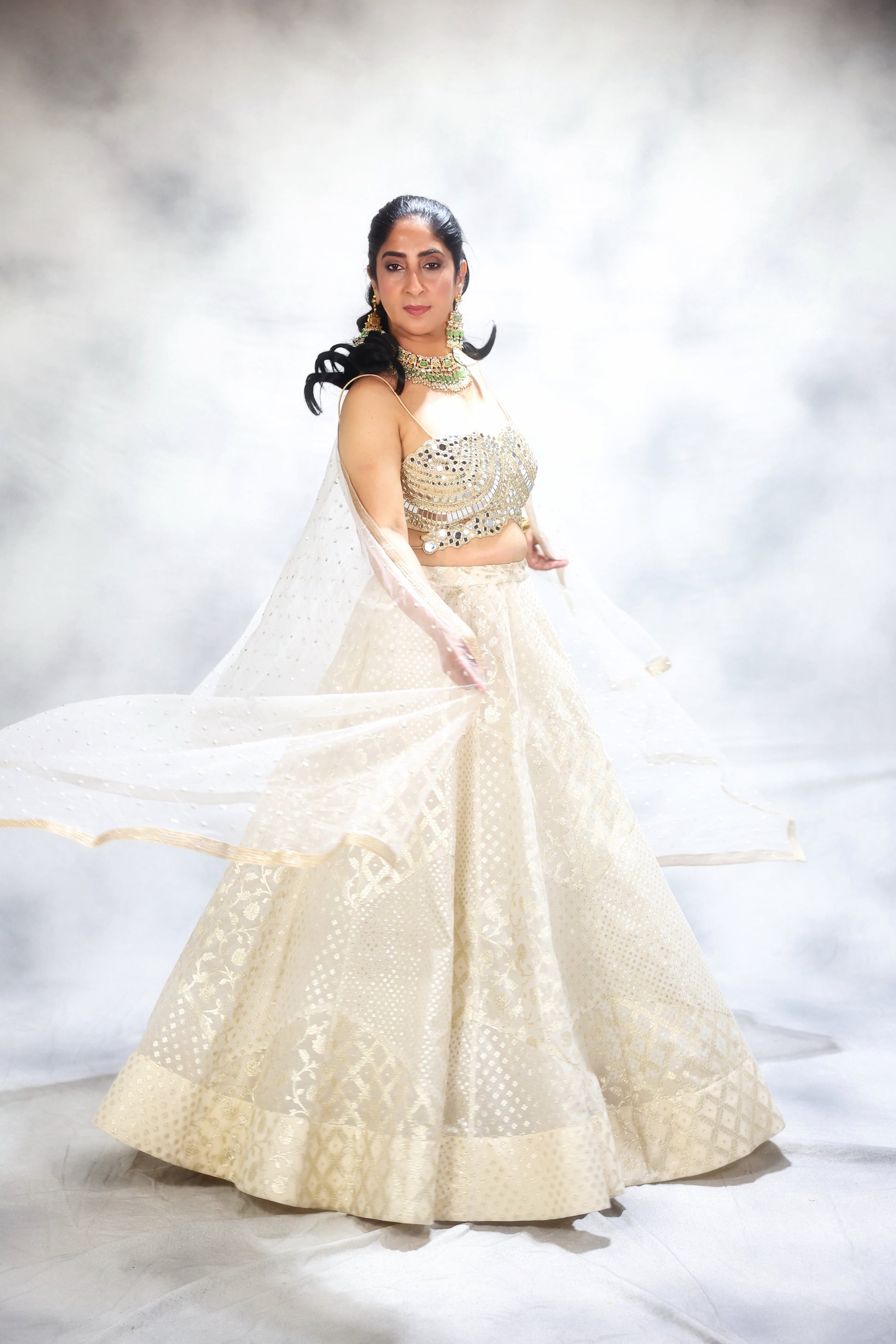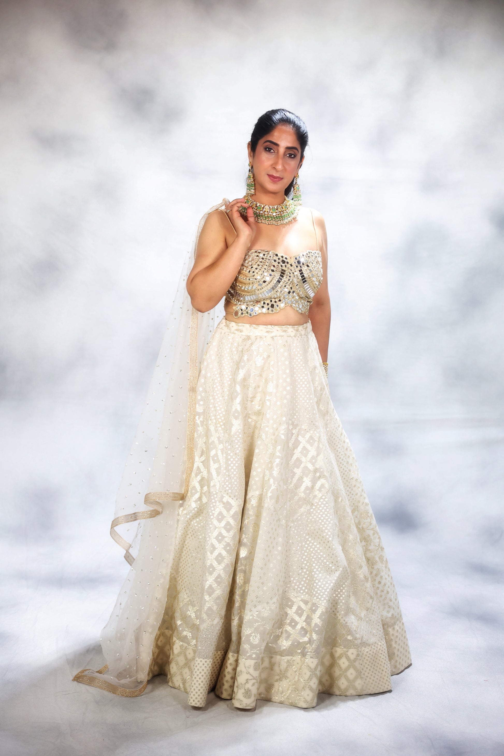 Hamd embroidered blouse paired with soft net duppatta