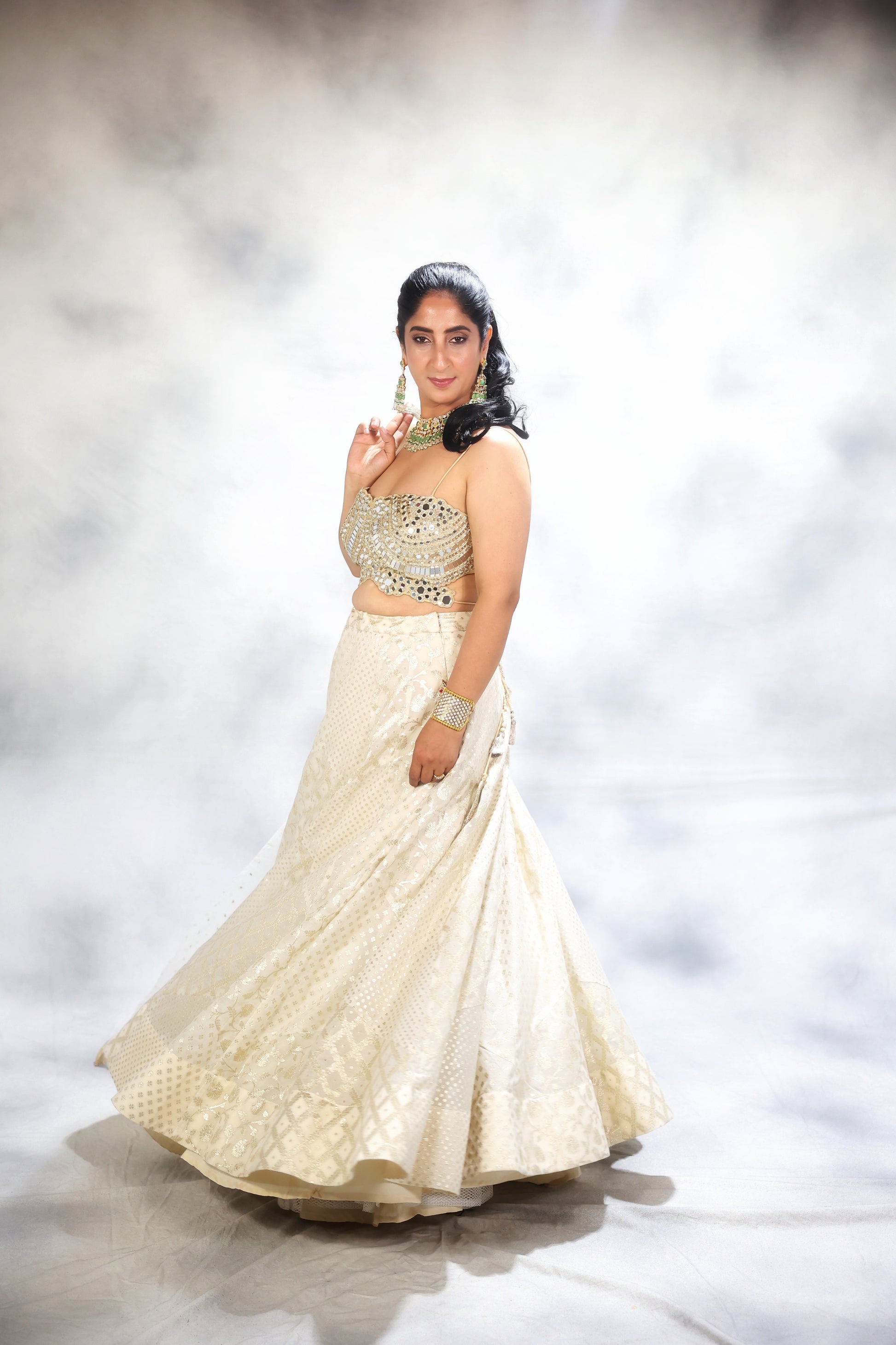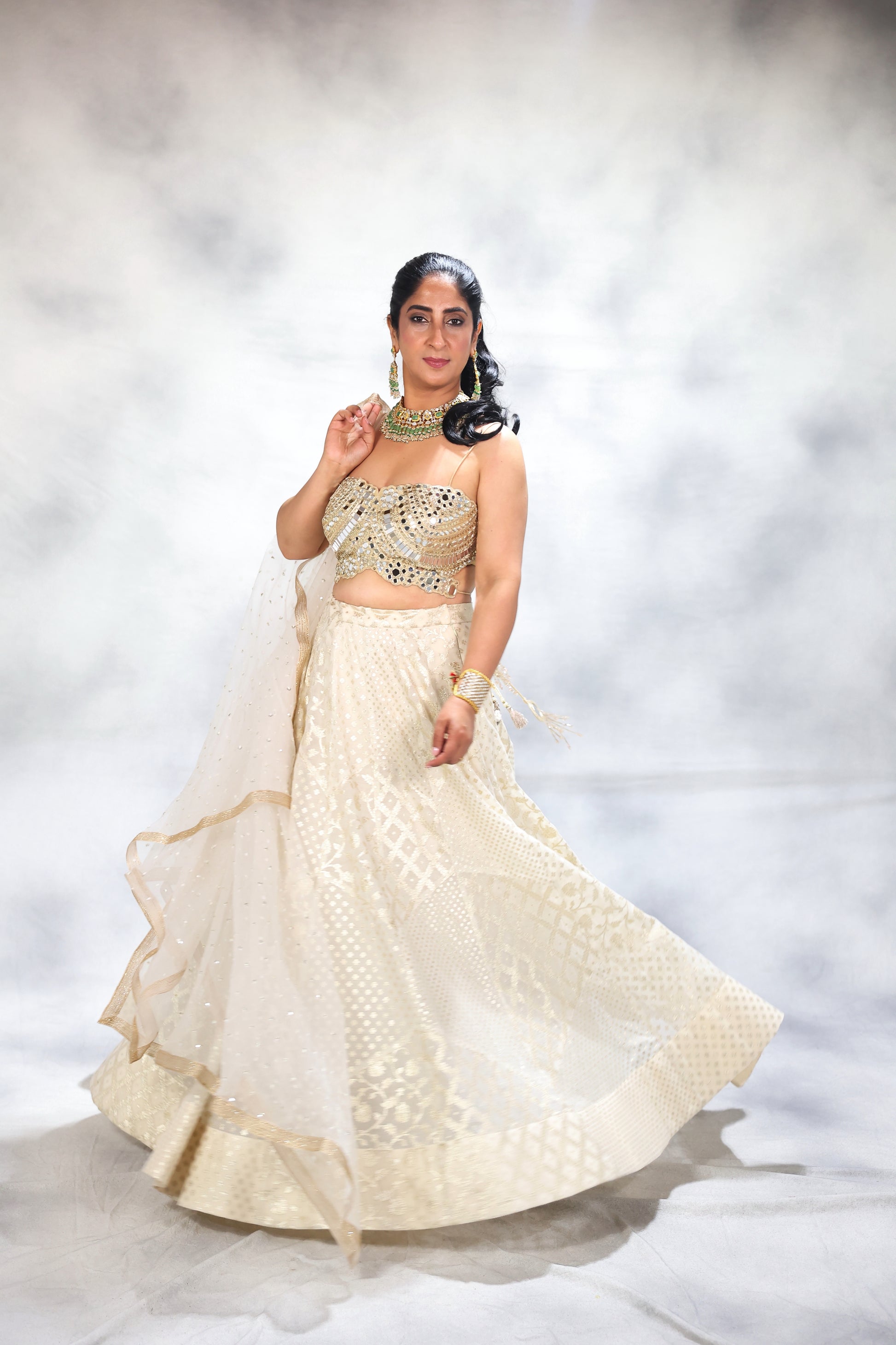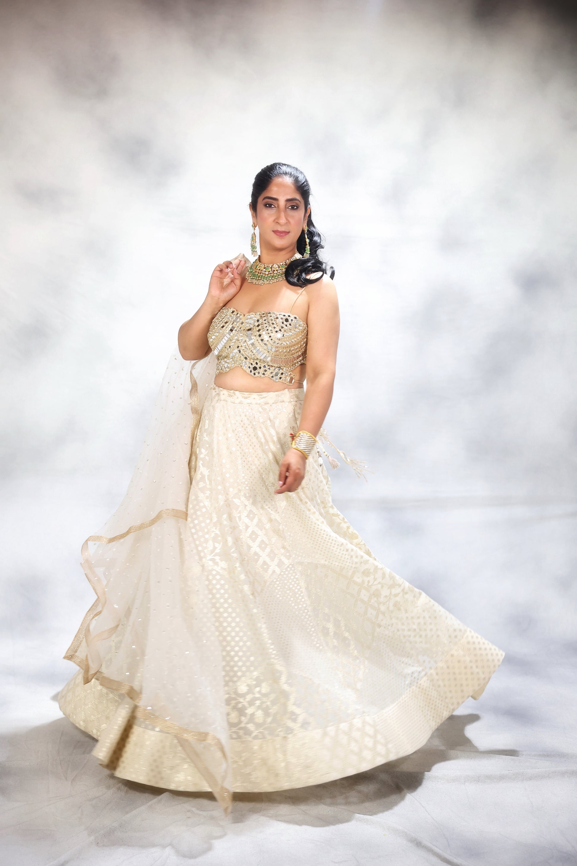 Hamd embroidered blouse paired with soft net duppatta